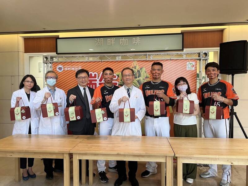 端午節將至,高雄長庚醫院附設的「湖畔咖啡屋」庇護工場在勞工局的指導下,精心製作端午養生粽,今(2日)開賣,並邀請職棒統一獅隊投手陳韻文、捕手陳重羽與野手李丞齡齊協助推廣,也歡迎民眾多多捧場吃粽做公益。