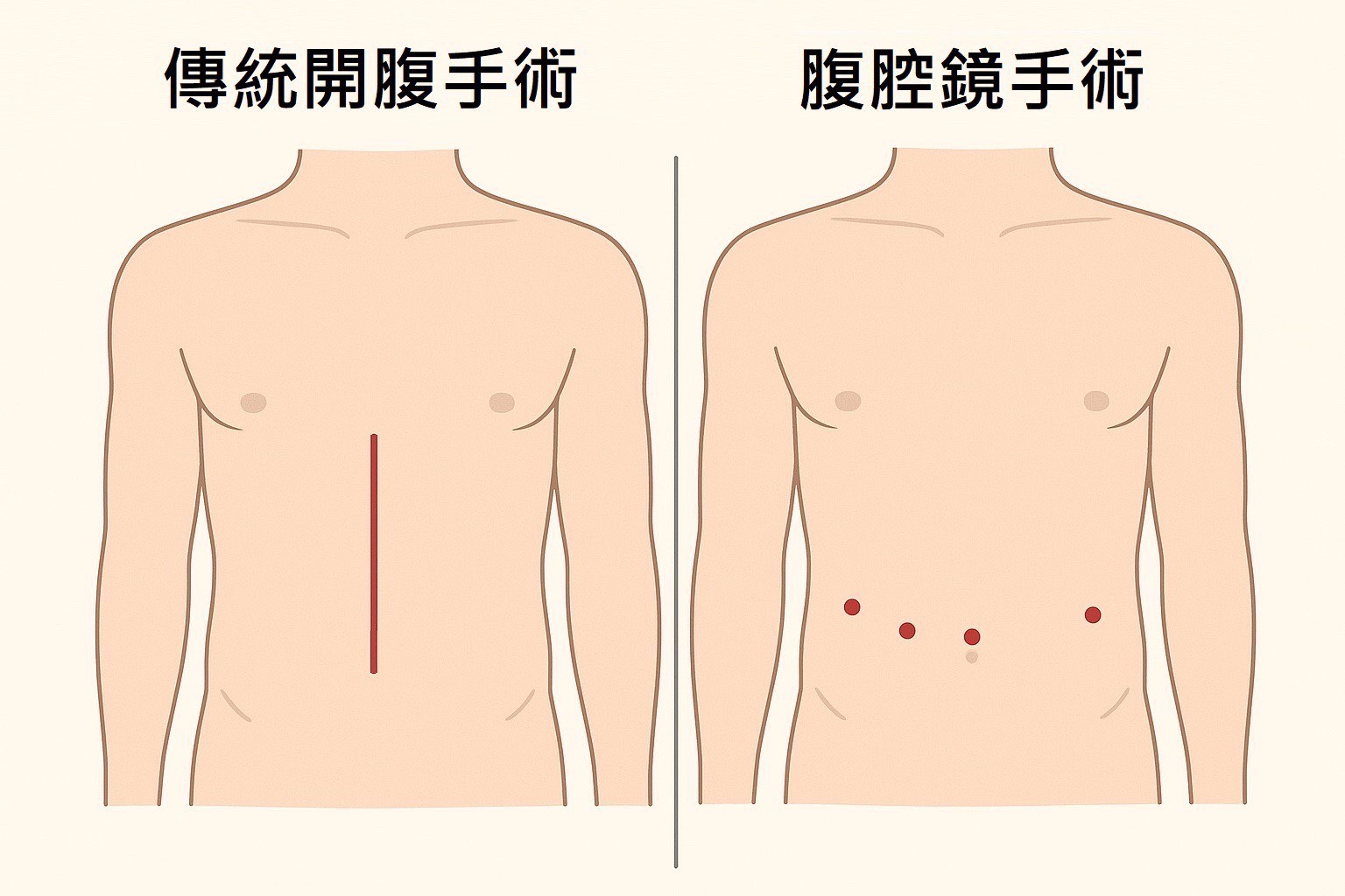 | 傳統開腹手術 | 腹腔鏡手術 | |