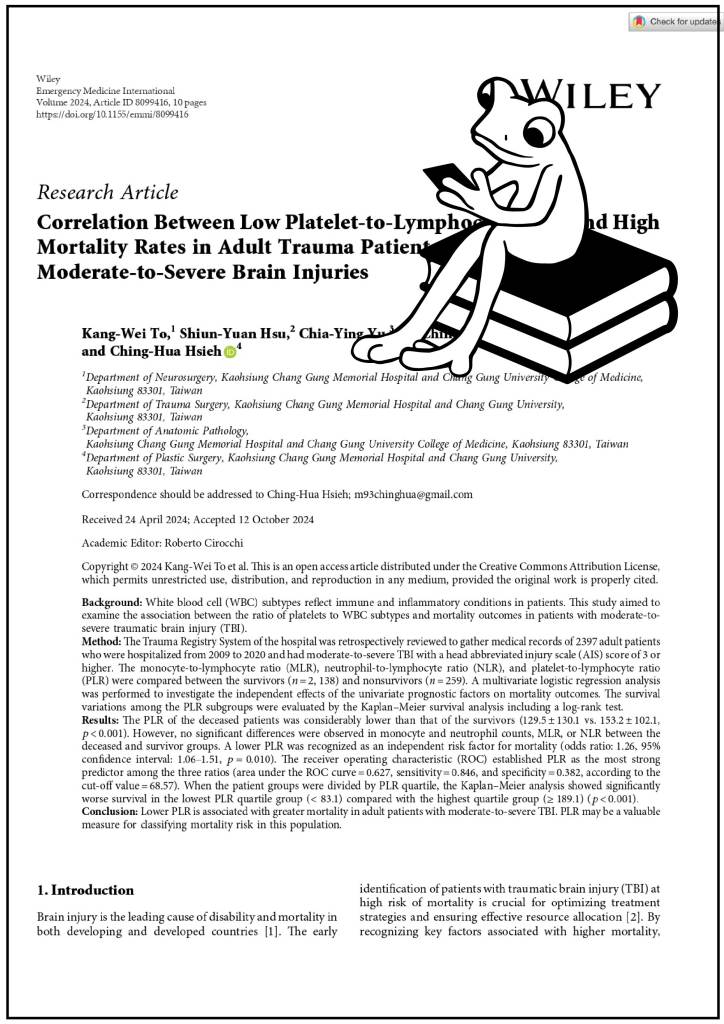 這篇論文是由神經外科竇康瑋醫師於謝青華醫師的指導下完成,發表於12月的SCI雜誌Emergency Medicine International。